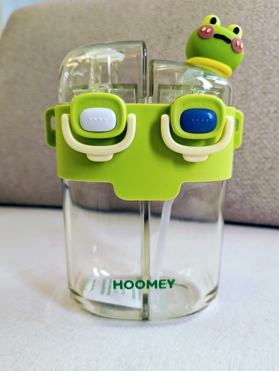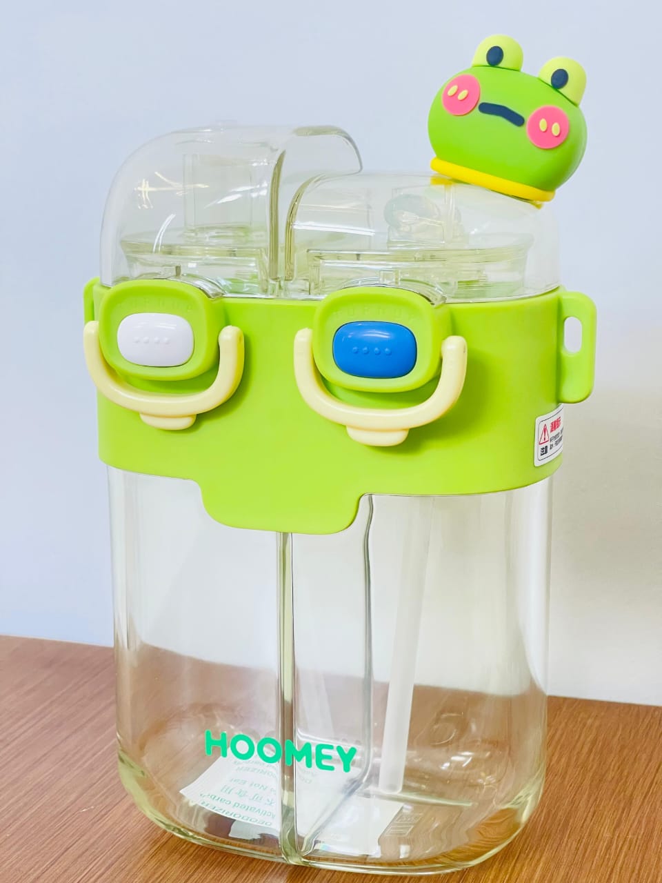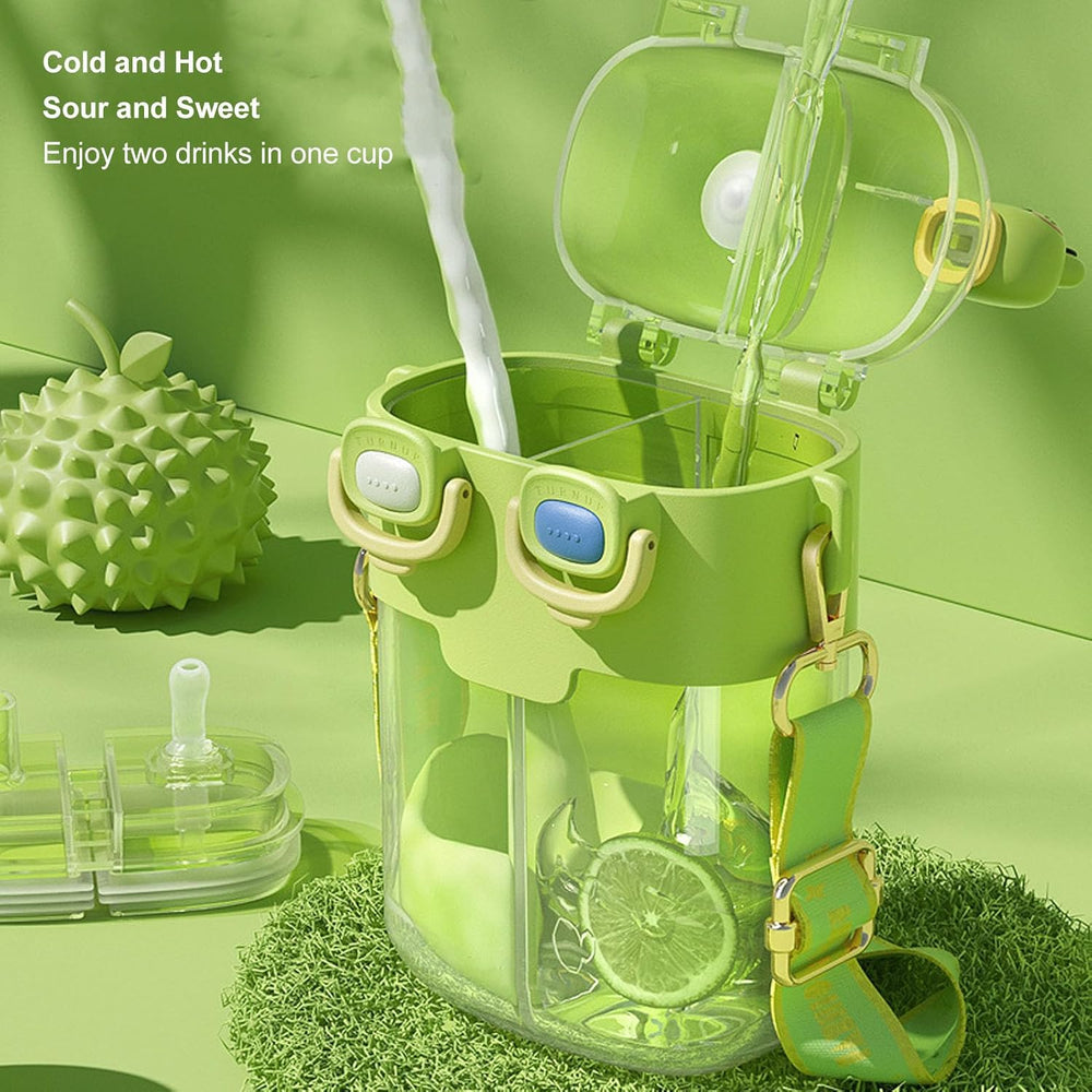 DUAL USE: This cute water bottle features 2 cups for storing different drinks, with a 780ml capacity, could meet your daily drink needs.