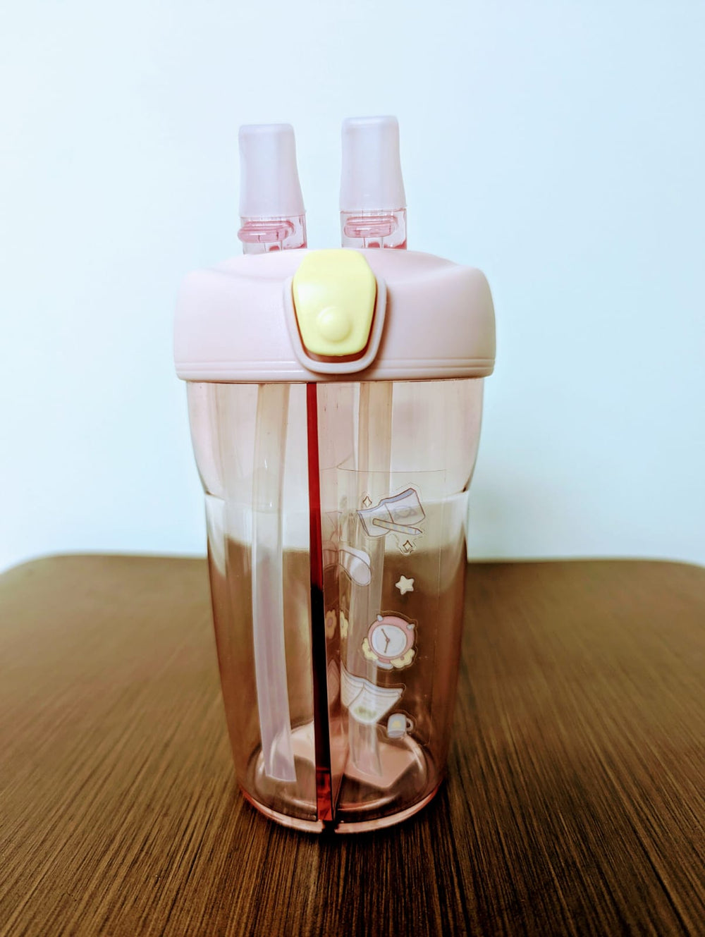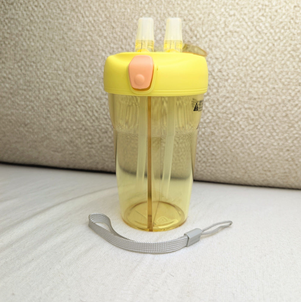 This innovative water bottle is perfect for sharing or enjoying two different drinks at once! The bottle features a unique split design that divides it into two separate compartments, each with its own straw. Made from durable, food-grade plastic, it's ideal for staying hydrated on the go. The secure, leak-proof lid has a push-button opener for easy access to both straws. With its compact size and playful design, this bottle is great for kids, couples, or anyone who wants a little variety in their hydration. It's an excellent choice for school, workouts, travel, or a fun day out.