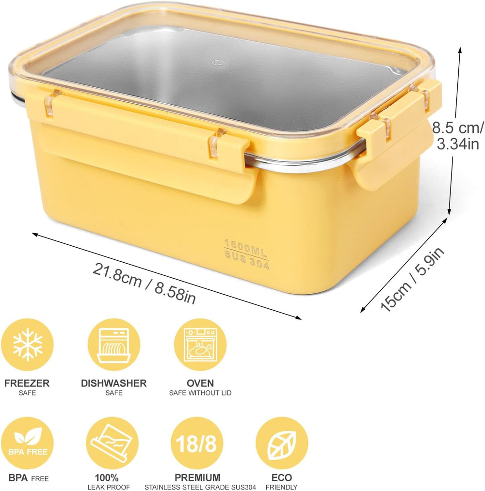1600ml Capacity: With a generous 1600ml capacity, this food storage container comfortably fits a variety of meal combinations, satisfying both small and larger appetite needs.
