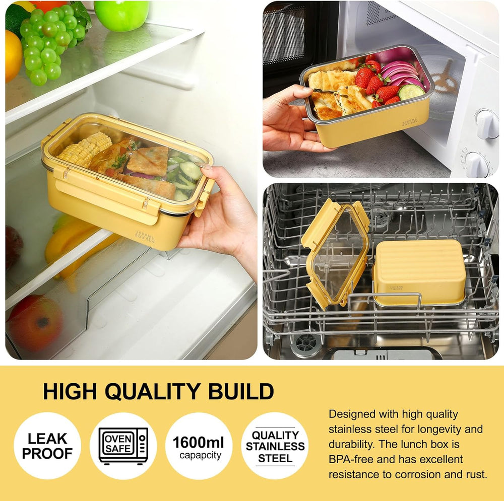 Leak-Proof Seal Design: Featuring a unique, tight-fitting clear lid, our lunch box prevents any leaks, making it perfect for on-the-go meals without the worry of spills.